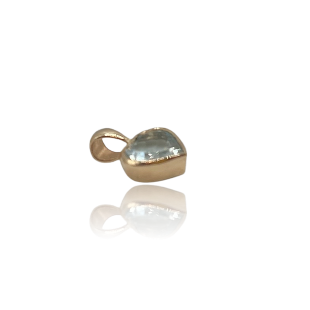 Part of our Bijoux Roux in-house collection. Made to order in Los Angeles, CA of 14k yellow gold bezel setting and natural aquamarine which is the birthstone for March. Stone is 7mm in length, 13mm including bail. Opening is 4mm wide. Some items may be in stock and available to ship immediately. If item is not in stock please allow 2- 4 weeks for delivery.