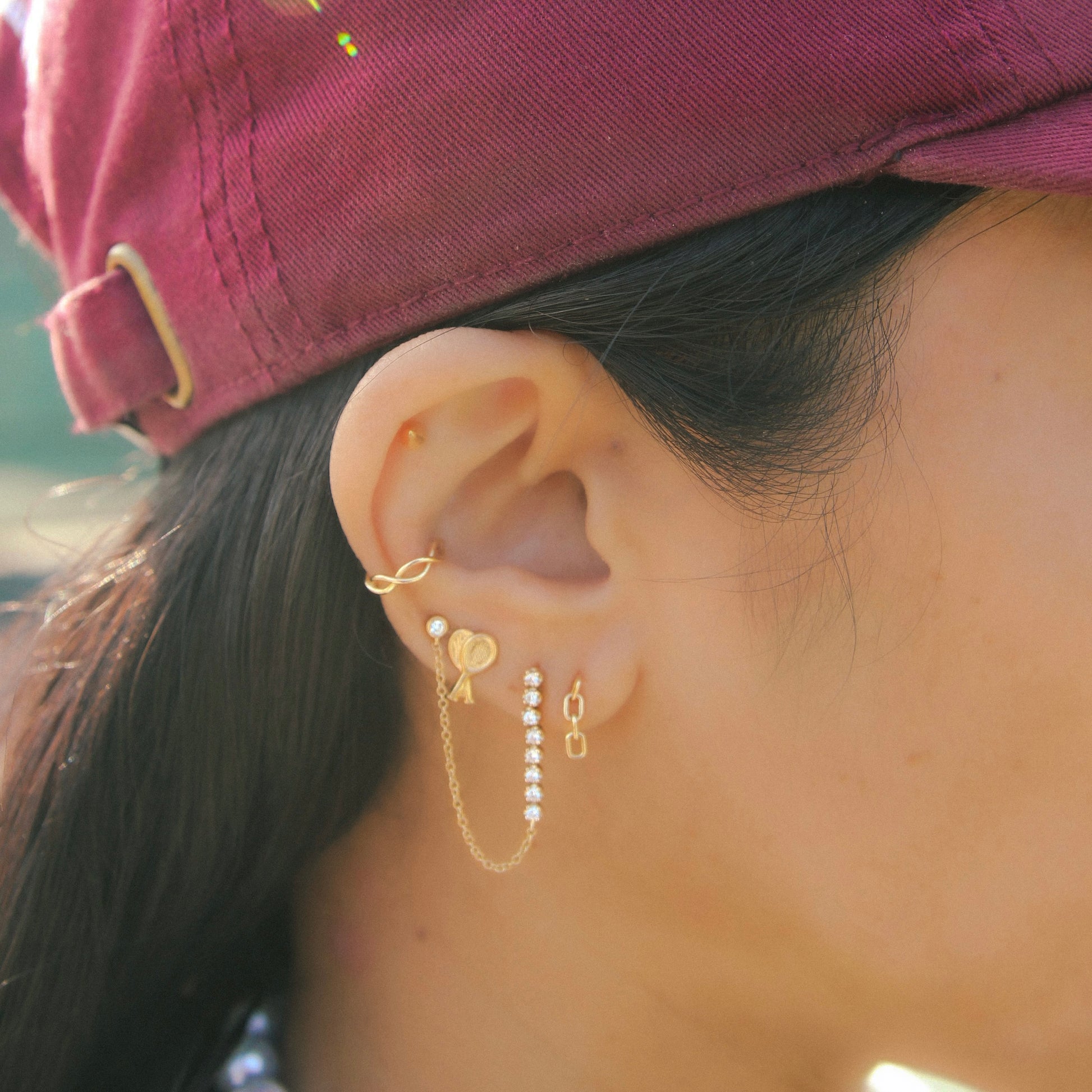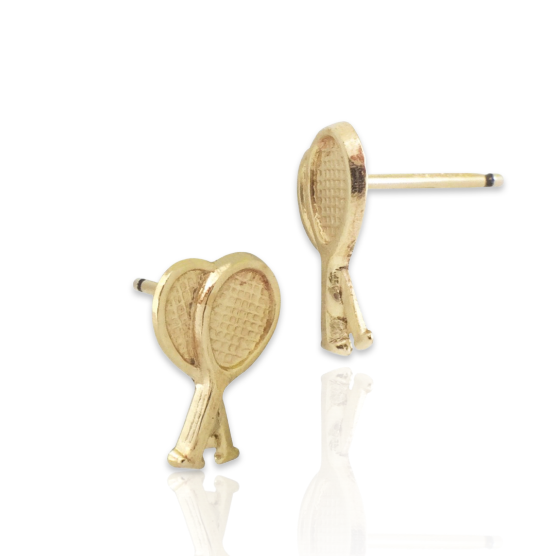 Pair of 14K gold yellow 10mm tennis racquet stud earrings with friction push backs