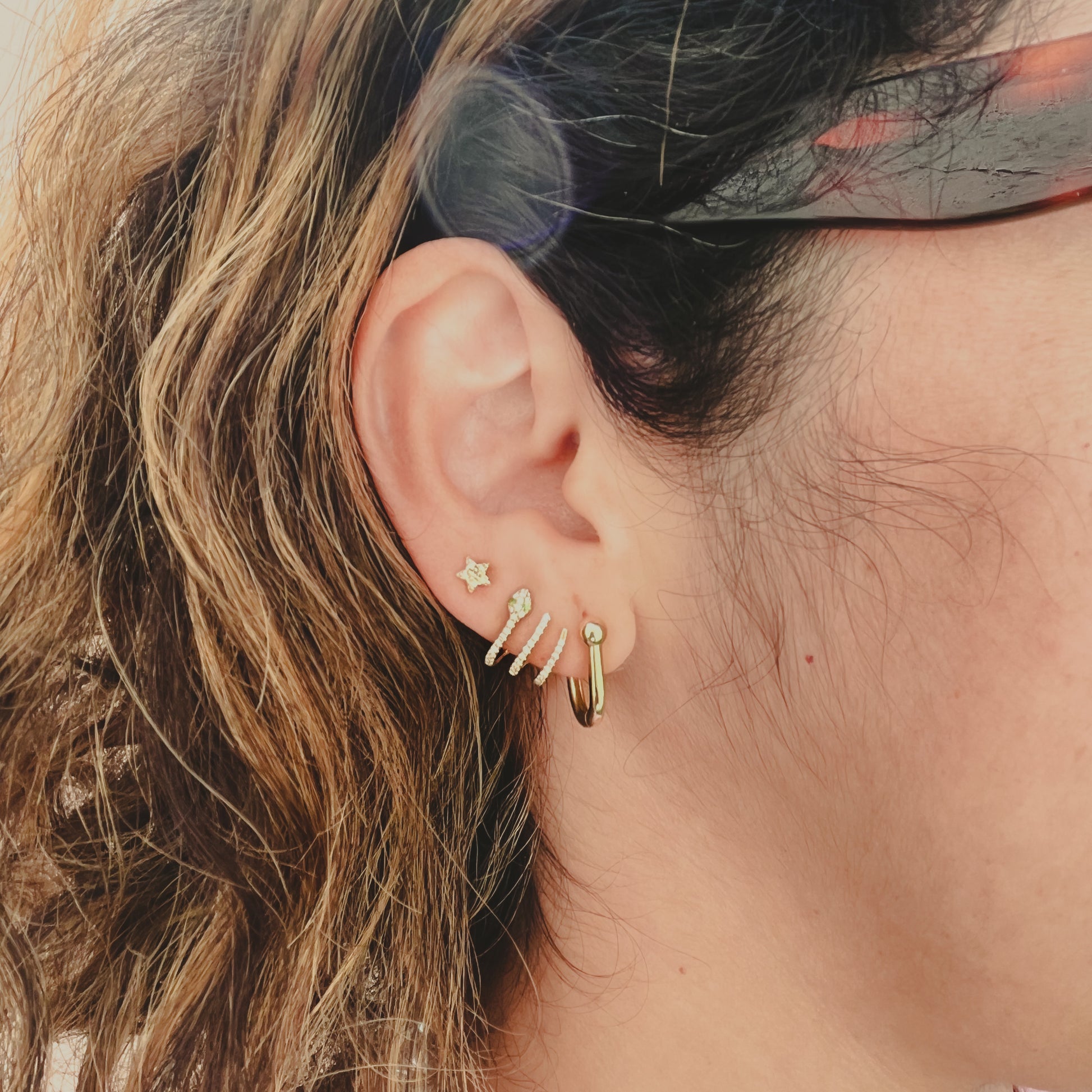14k Pave Diamond Huggie Earrings with Emerald Eyes
