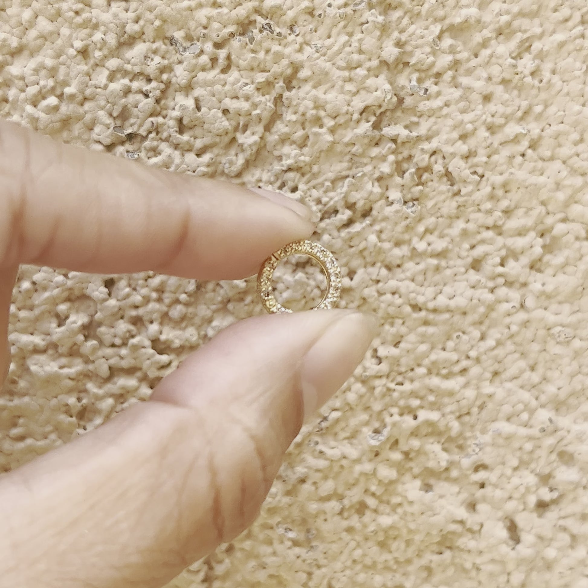 14K yellow gold round 10mm snap close chair link connector with pave diamonds on one side. 1.5mm link thickness
