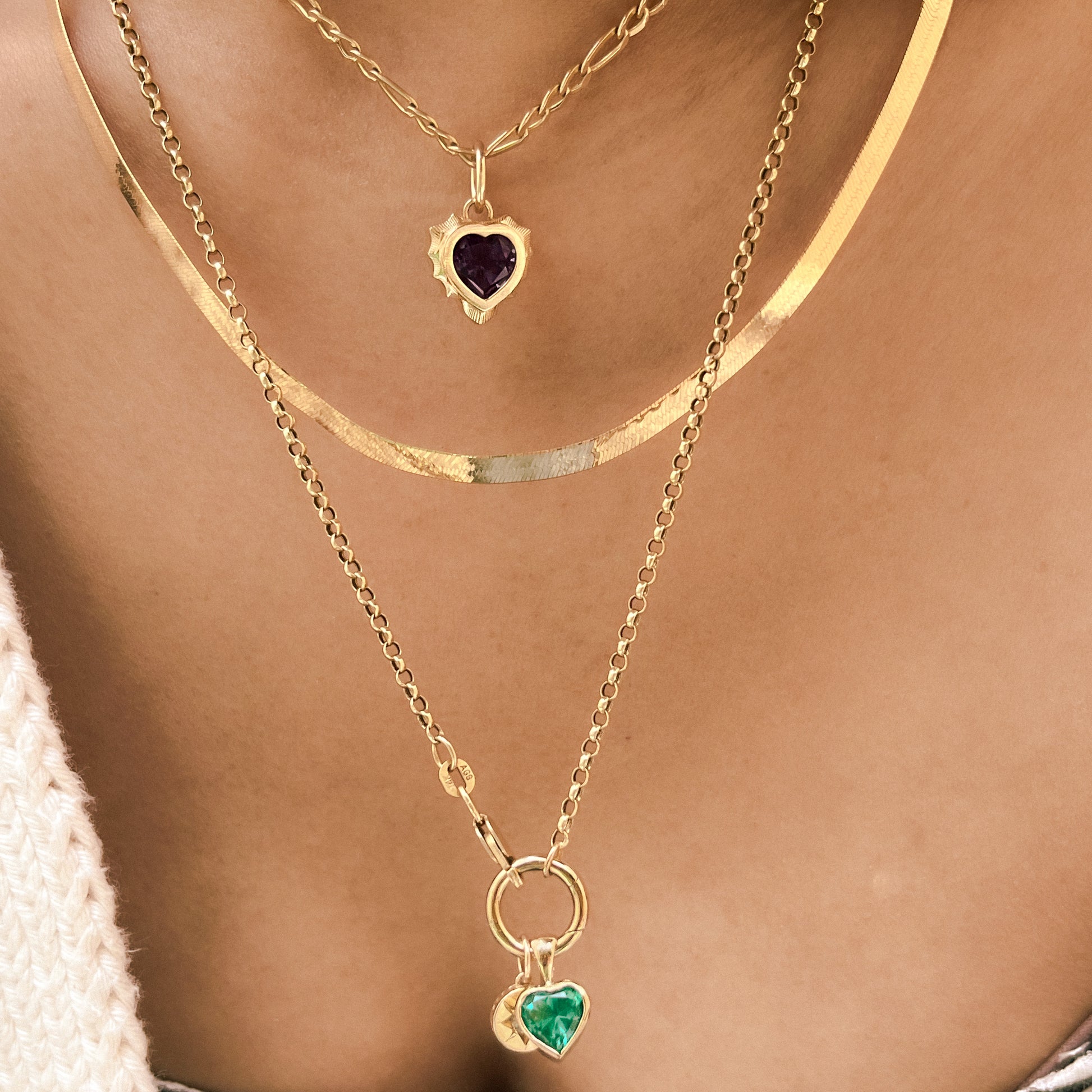 14K yellow gold round 12mm push-gate charm link connector, holds max 3 charms