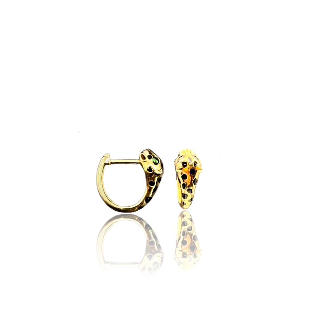 Gold Spotted Jaguar Huggie Earrings with Emerald Eyes