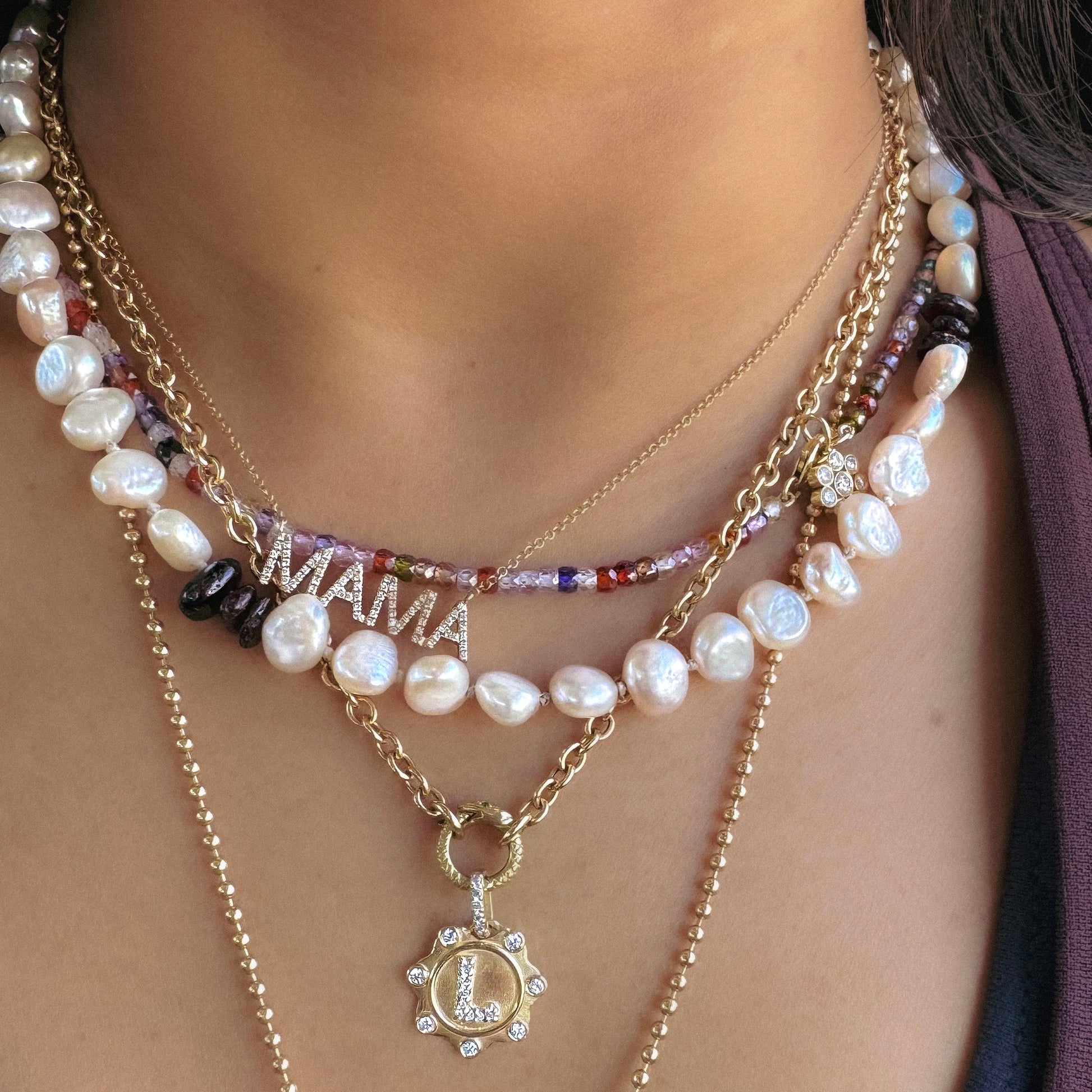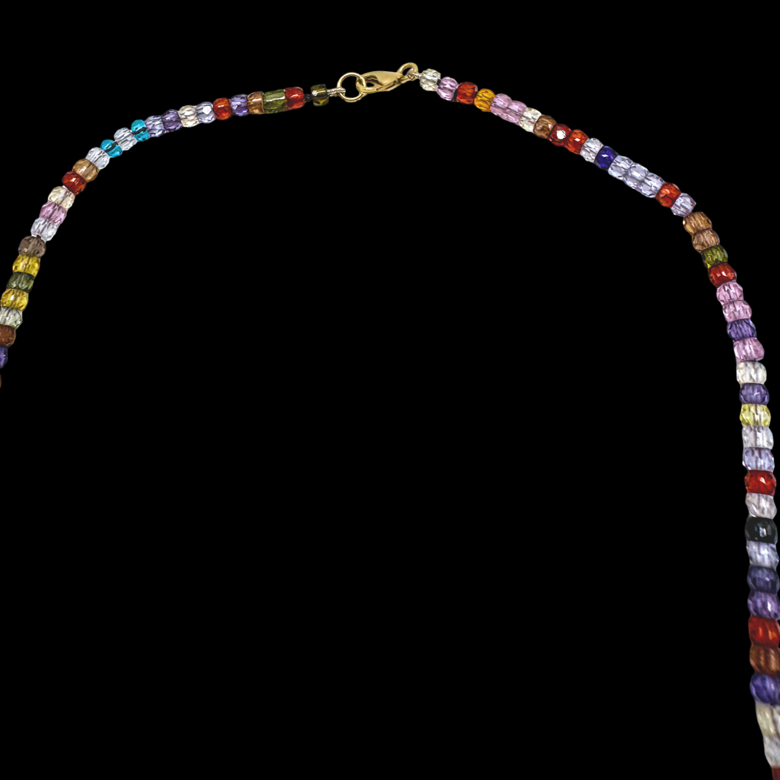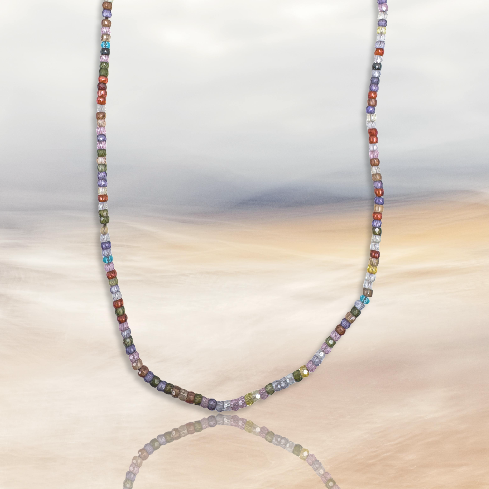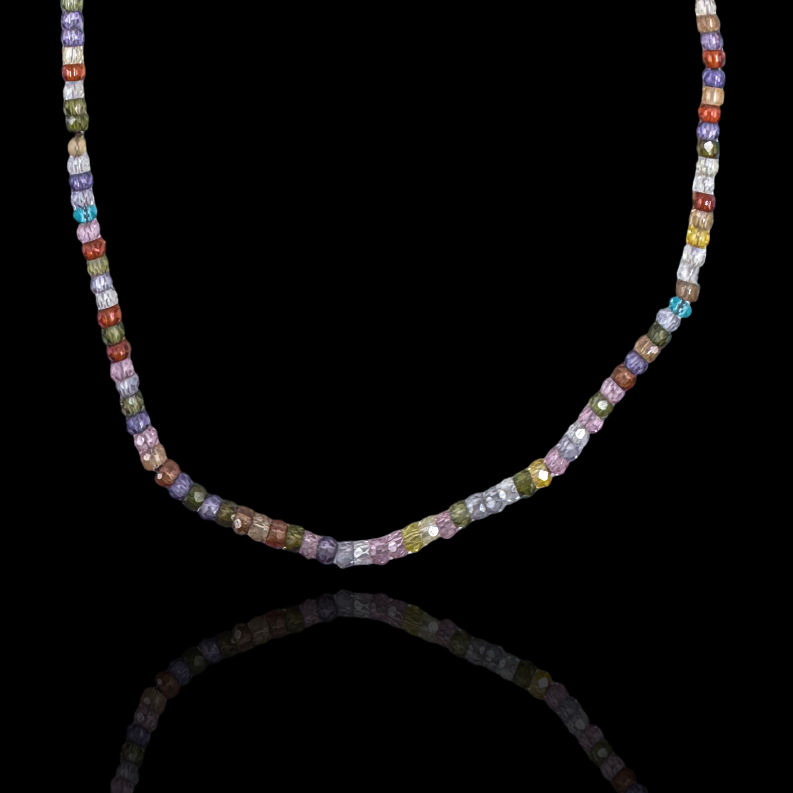 Handmade in Southern California with 14k gold and multi gemstones on silk. Each one is unique. 16" long, custom lengths available. Contact gold@bijouxroux.com.