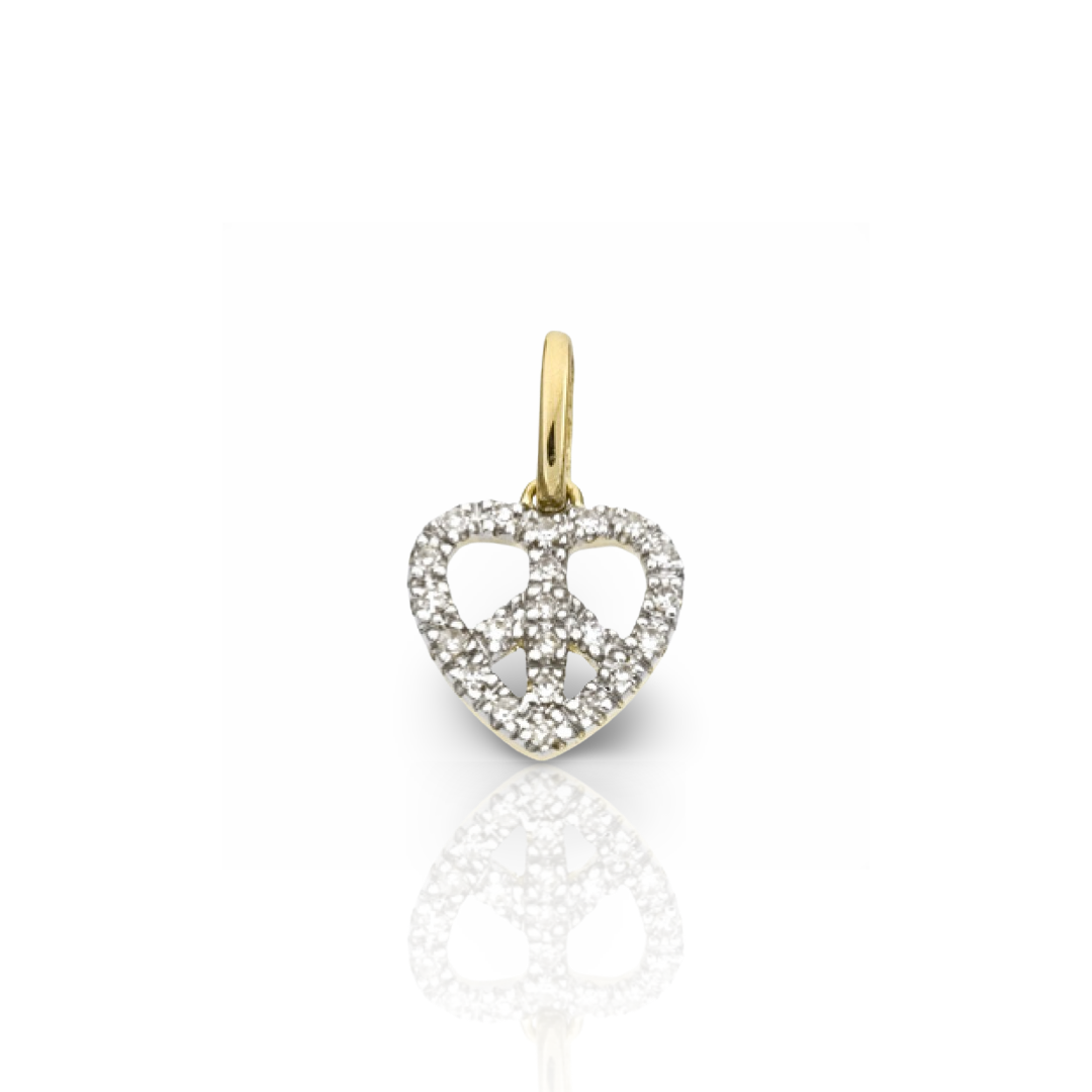 14K Gold Yellow 10mm Diamond Heart and Peace Sign Charm (22 Diamonds, 0.09 Carats Total Diamond Weight)