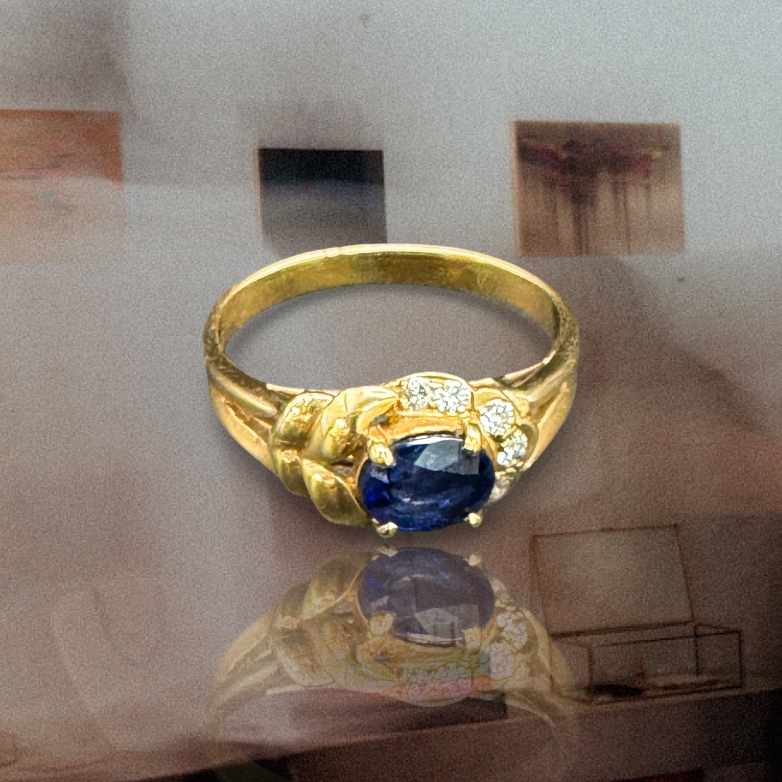 Morning Glory Vintage Sapphire & Diamond Gold Ring