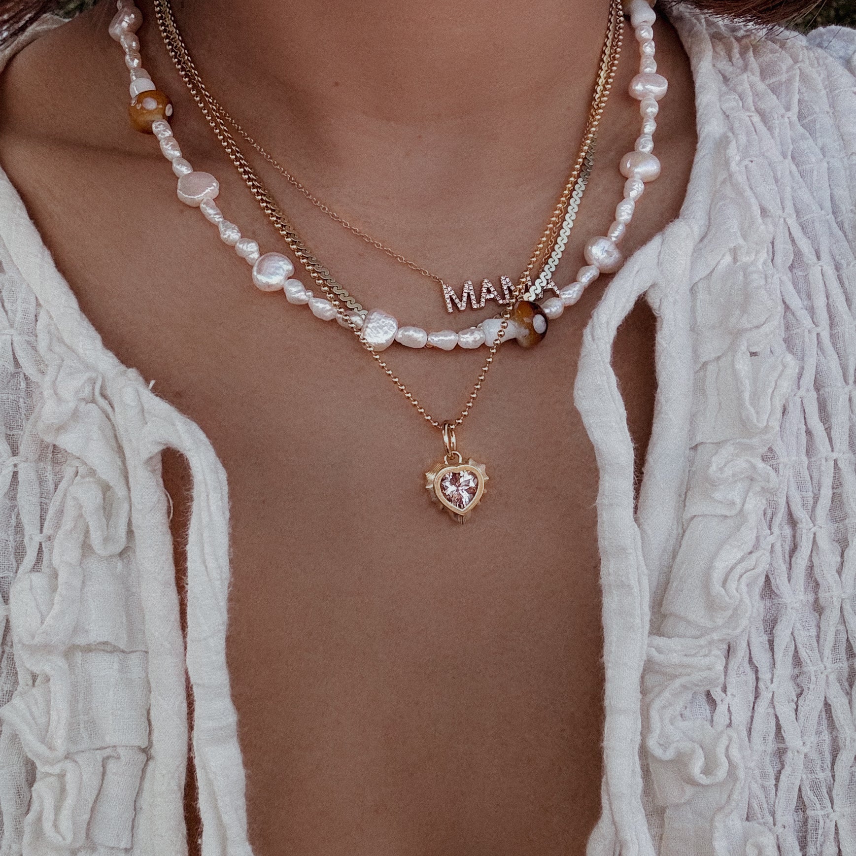 Part of our Bijoux Roux in-house collection. Hand-made to order in Los Angeles, CA of 14k yellow gold custom bezel setting surrounded by a fluted heart frame and Morganite. Stone is 9mm in length. Some items may be in stock and available to ship immediately. If item is not in stock please allow 2 - 6 weeks for delivery.
