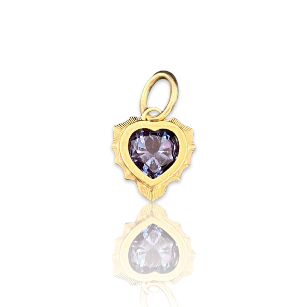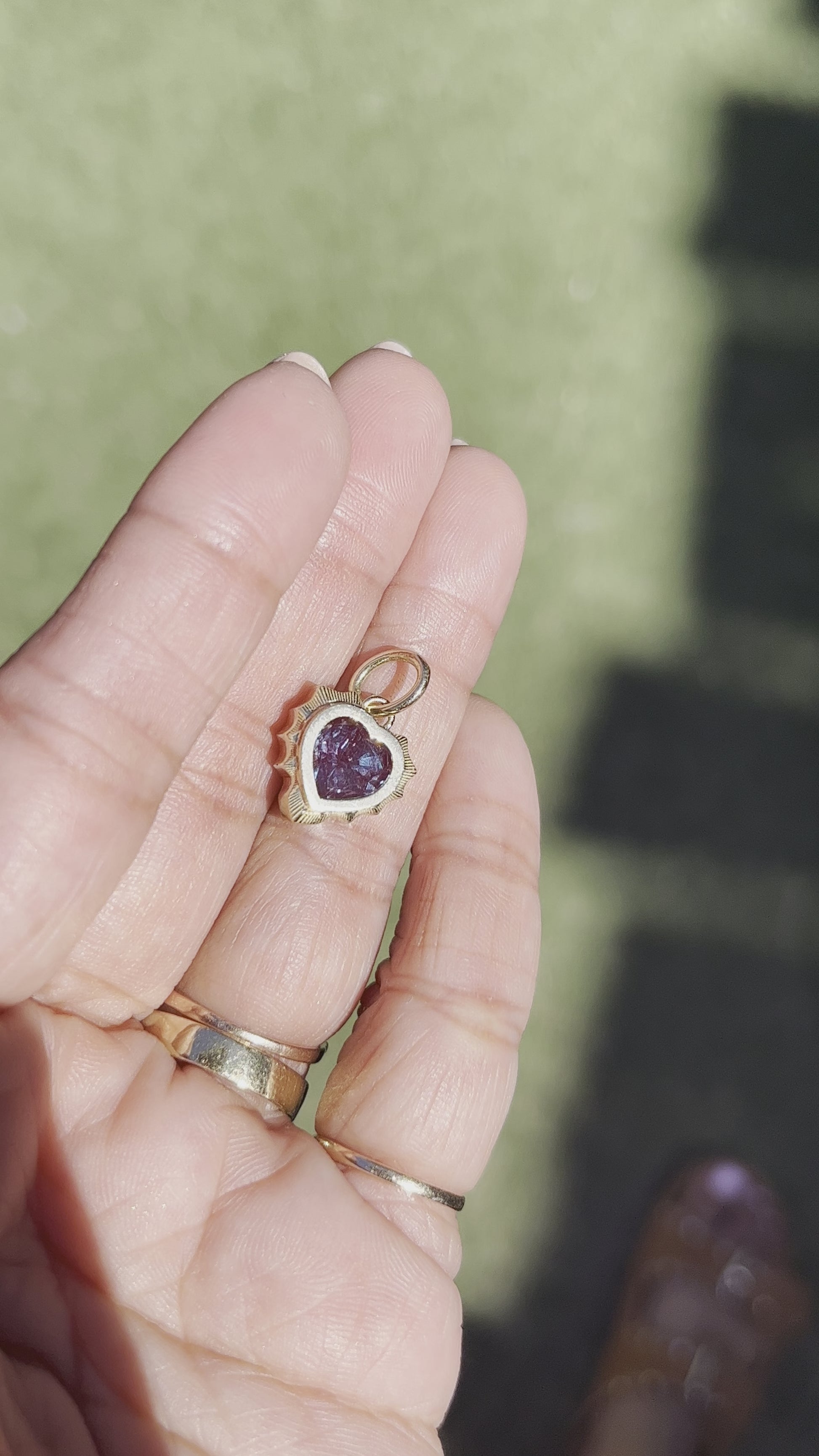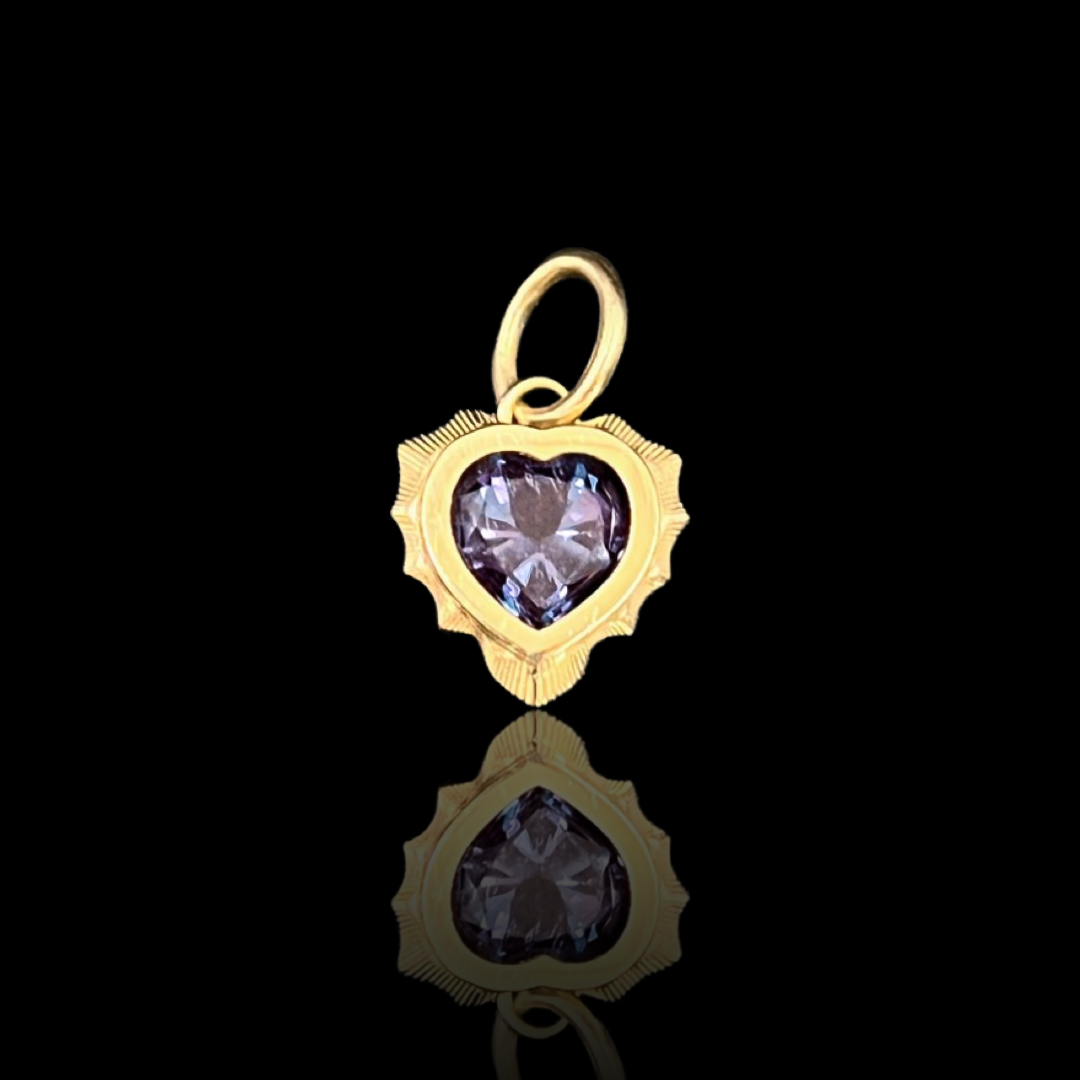 Part of our Bijoux Roux in-house collection. Hand-made to order in Los Angeles, CA of 14k yellow gold custom bezel setting surrounded by a fluted heart frame and natural alexandrite which is one of the birthstones for June. Stone is 9mm in length. Some items may be in stock and available to ship immediately. If item is not in stock please allow 2 - 6 weeks for delivery.