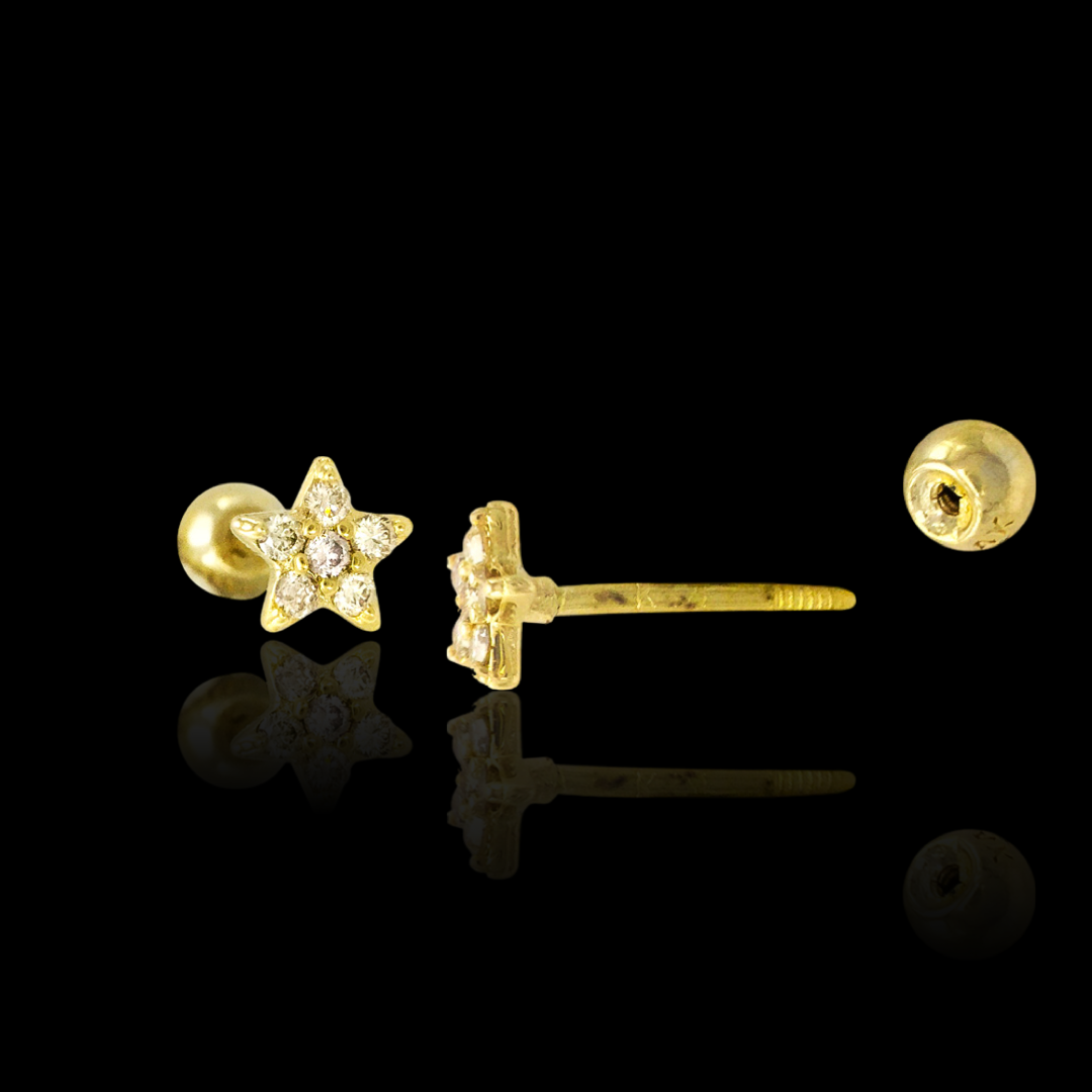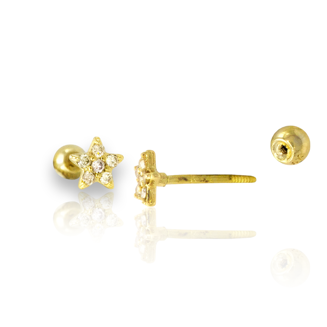 4mm 14K Gold and Diamond Crescent Moon Straight Barbell Ear Stud for Cartilage or Lobe
