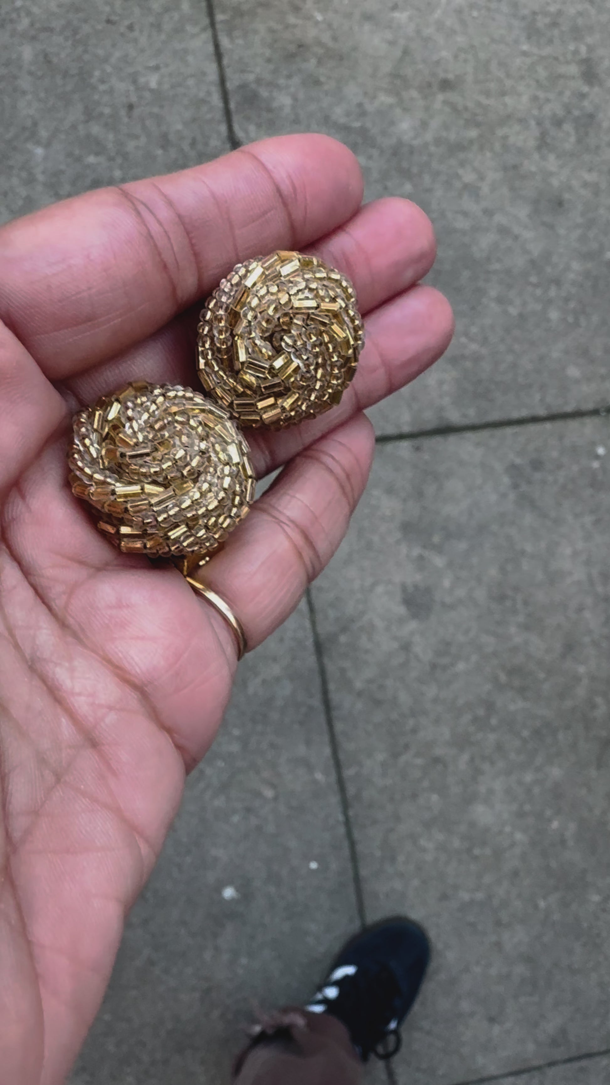 Crafted in Paris, France, these Vintage Beaded Swirl Button Clip-on Earrings feature clear glass and gold tone beads for a refined and versatile addition to any outfit. Experience a touch of old-world elegance with these stunning earrings.