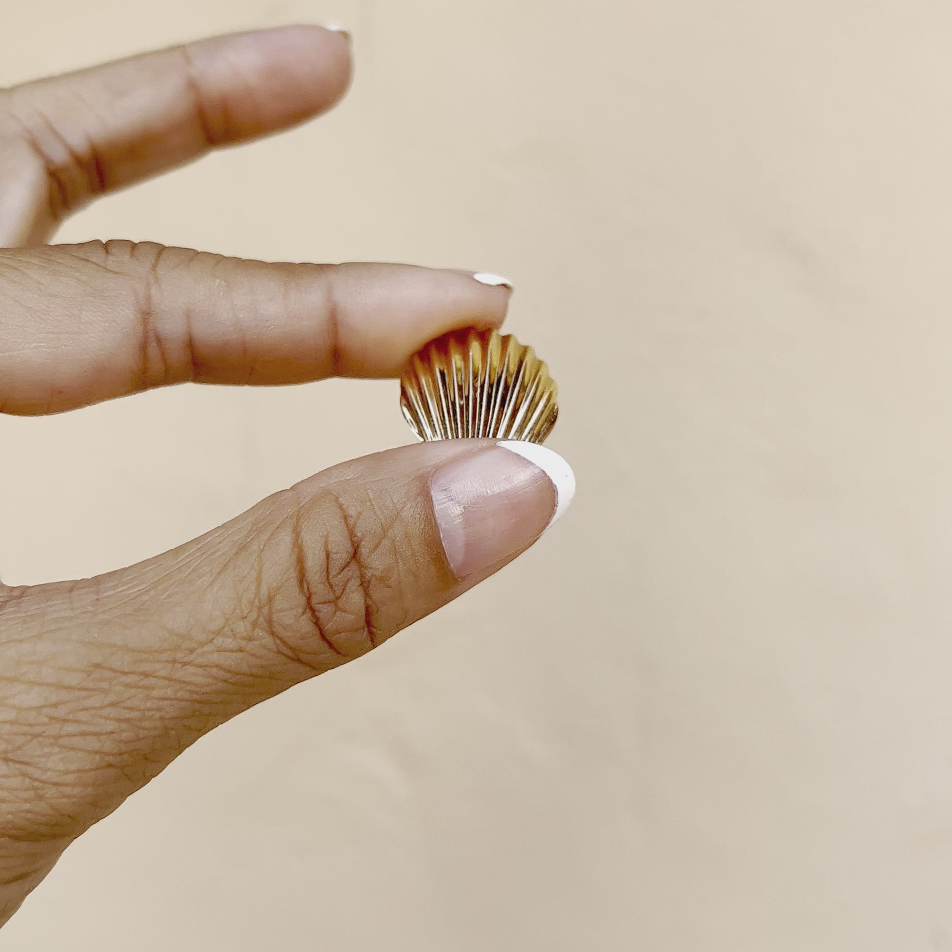 These stunning post earrings feature a vintage seashell design crafted from 14k yellow gold, measuring 19x16mm in size.