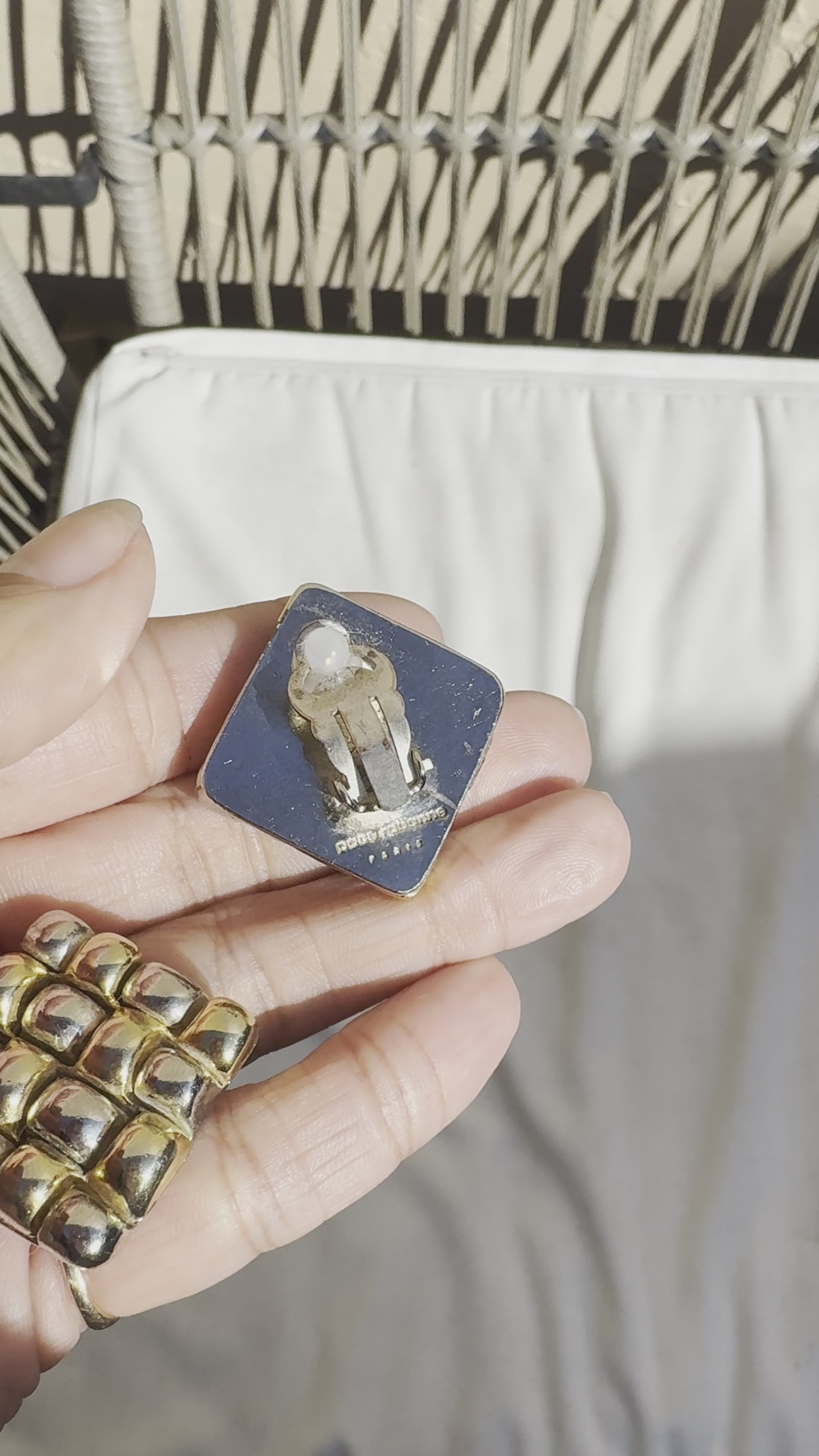 Vintage Paco Rabanne Woven Checkerboard Clip-on Earrings