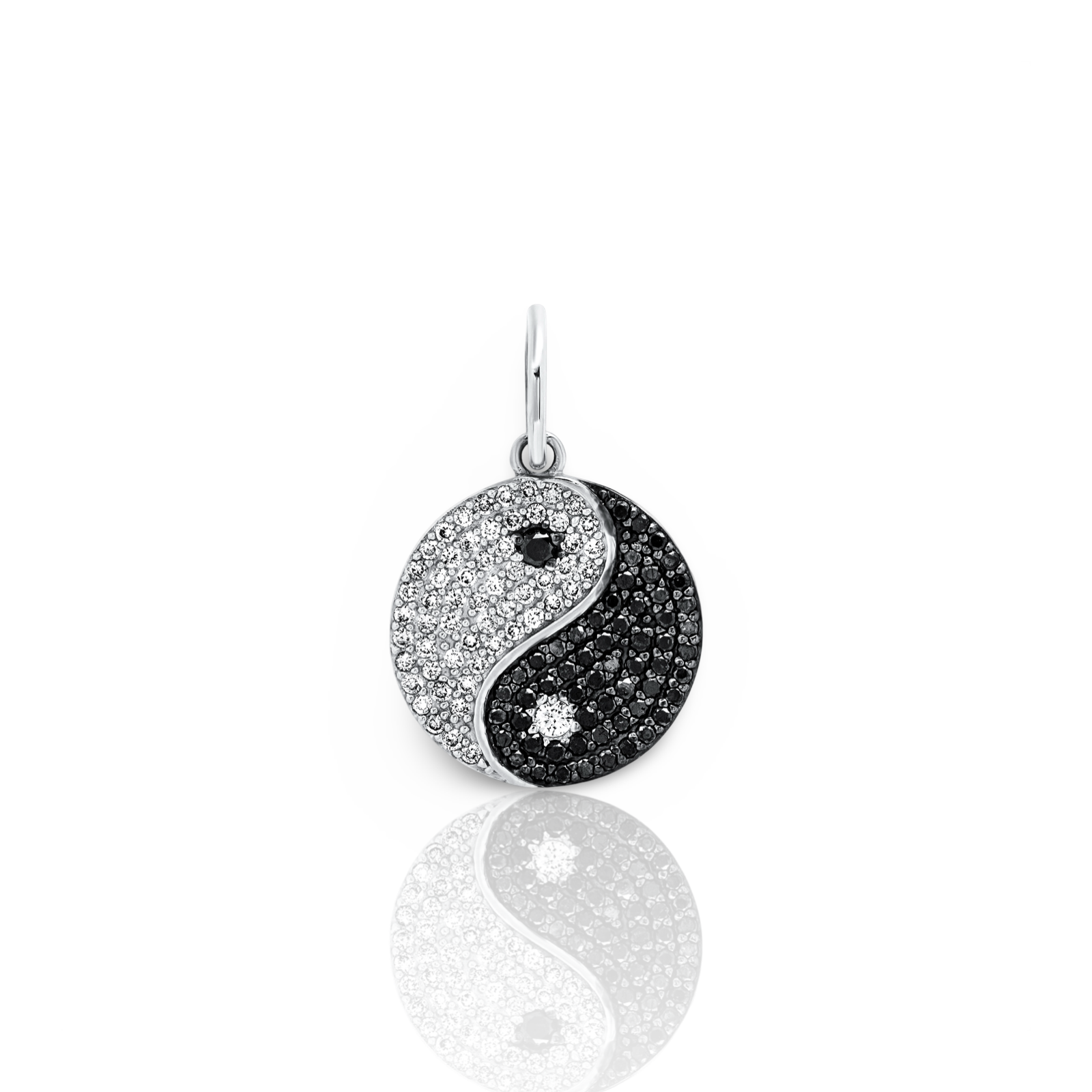 Hand-crafted in our Los Angeles studio, this Yin Yang charm features encrusted 42 black and 42 white lab-grown diamonds on 14K gold, making it the ideal addition to elevate your necklace collection. Choose from rose, white, or yellow gold options. 15mm in diameter.